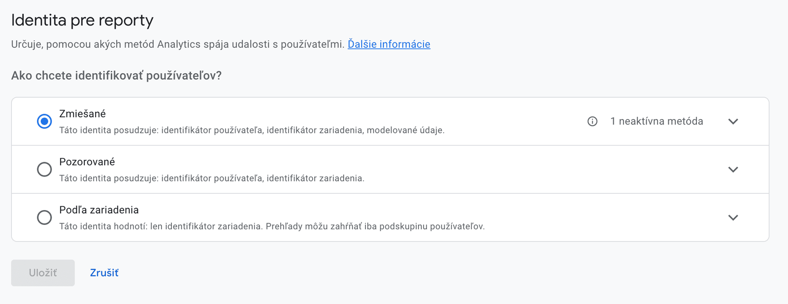 Ak máte povolené Google signály a posielate používateľské ID, môžu sa odomknúť ďalšie metódy identifikácie. Výhodou tejto funkcie je, že môžete meniť jej nastavenia kedykoľvek, a tieto zmeny sa aplikujú na historické aj budúce dáta.