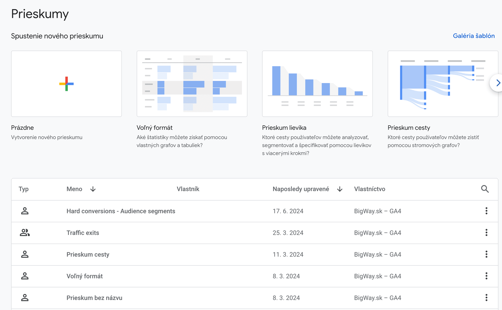 S pomocou nástroja Explorations si môžete vytvárať prispôsobené reporty a hlbšie skúmať dáta podľa vašich potrieb na základe rôznych parametrov, ako sú vykonané akcie, správanie alebo konverzie.