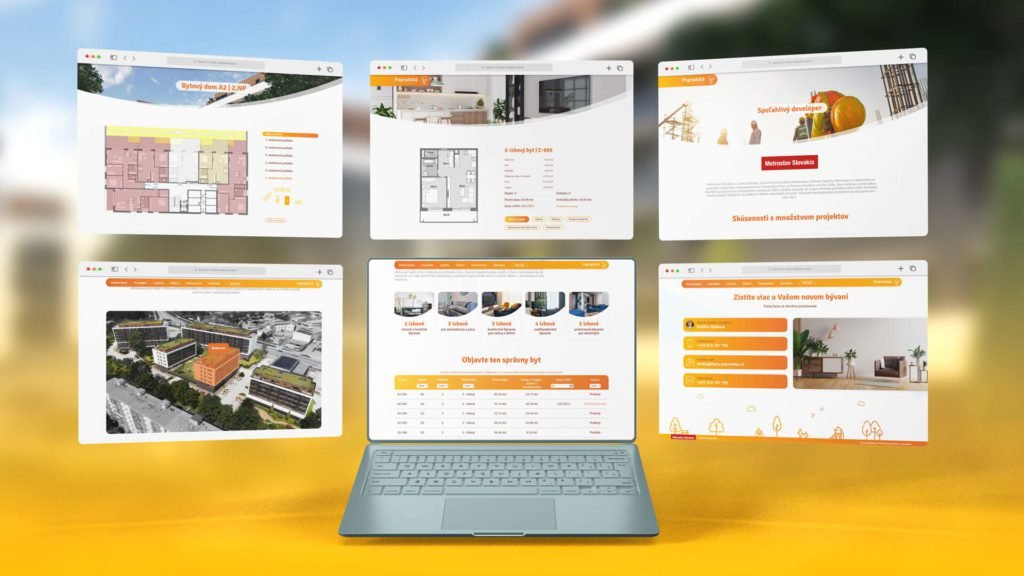 Po odovzdaní kompletnej vizuálnej identity pre nášho klienta Metrostav Slovakia sme sa pustili do tvorby webstránky. Stránka mala byť moderná a zároveň ponúknuť budúcim zákazníkom všetky potrebné informácie. Okrem interaktívneho výberu objektu či konkrétneho bytu sme pripravili aj praktickú tabuľku bytov s filtráciou. Jednoduchá použiteľnosť webov je jedným zo základných pilierov úspešnosti každej webstránky. Inak tomu nebolo ani v prípade tohto developerskeho projektu Byty Popradská.